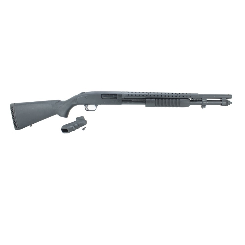 Mossberg to prawdziwy lider na rynku strzelb typu “pump action”. Model 590 to strzelba powtarzalna, używana przez siły specjalne, wojsko i policje wielu krajów. Wykonana z najlepszych materiałów. Najwyższa niezawodność funkcjonowania, w każdych warunkach klimatycznych i terenowych. Lufa długości 527 mm, o dużej masie zapewnia możliwość bardzo intensywnego strzelania. Sprzyja temu również osłona termiczna lufy. Matowe wykończenie zabezpiecza przed niepożądanymi odblaskami. W ukompletowaniu znajduje się dodatkowy chwyt pistoletowy. Umożliwa to odłączenie kolby właściwej i zastąpienie jej chwytem.