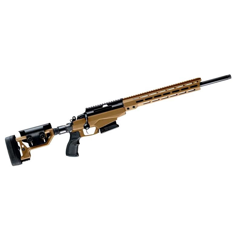 Wyprodukowany przez fińską firmę Tikka sztucer T3x Tactical A1 w kalibze 308Win, FS MT, z gwintem 5/8-24, lufa 24", w kolorze Coyot Brown.