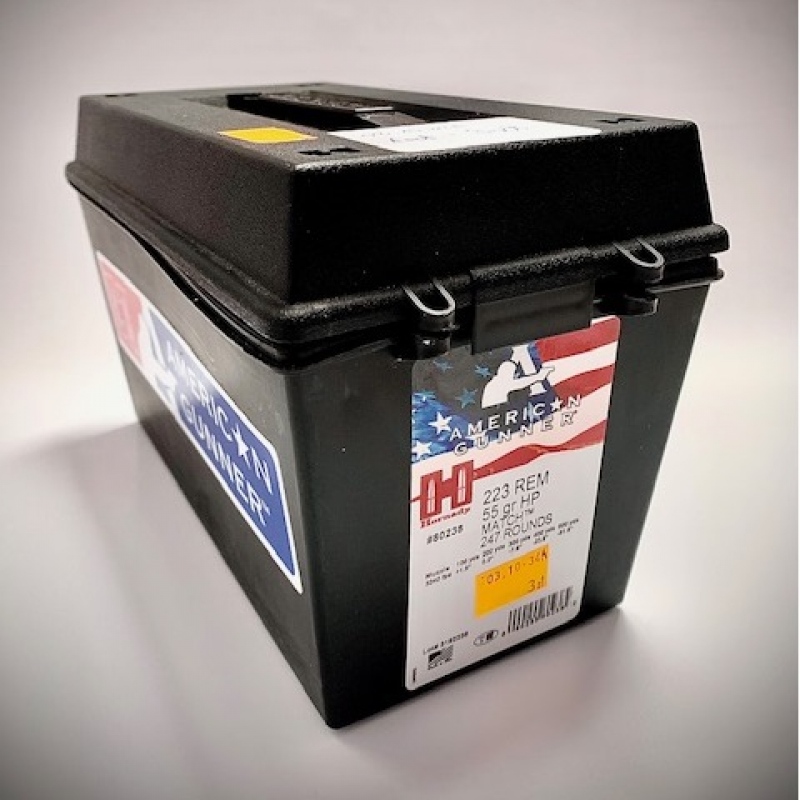 Seria amunicji: American Gunner® - amunicja tarczowa/myśliwska, przy produkcji której kontrola jakości dopuszcza bardzo małe tolerancje i utrzymuje nadzwyczajną powtarzalność z serii na serię, robiona według oryginalnej filozofii Joyce'a Hornady: "10 pocisków przez jedną przestrzelinę". Do tej serii łuski są specjalnie ręcznie badane i selekcjonowane, a proch i spłonka są najwyższej jakości. Może być również użyta do polowania na drobną zwierzynę.