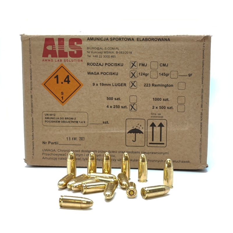 Doskonałą amunicja marki ALS w kalibrze pistoletowym 9x19.