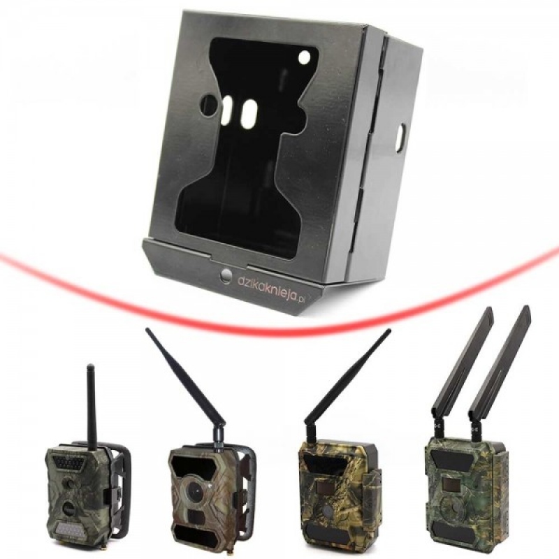 Metalowa obudowa zabezpieczająca fotopułapkę przed kradzieżą.