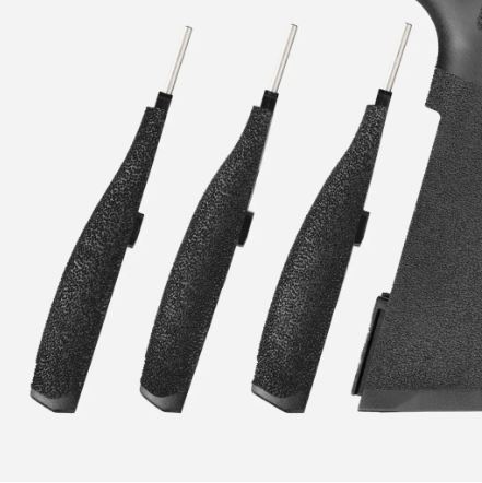 Echelon jest dostarczany z trzema wymiennymi okładzinami tylnymi chwytu – każdy ze zintegrowanym narzędziem do montażu. Nakładki są uniwersalne i można je montować w małych, średnich i dużych chwytach. Opracowana z myślą o wyzwaniach związanych z noszeniem w ukryciu, tekstura Adaptive Grip jest gładka w dotyku, dopóki nie zastosujesz nacisku i ułożysz chwytu na broni, wtedy tekstura zapobiega nadmiernym ruchom broni i zapewnia dobre przyleganie przy każdym strzale.